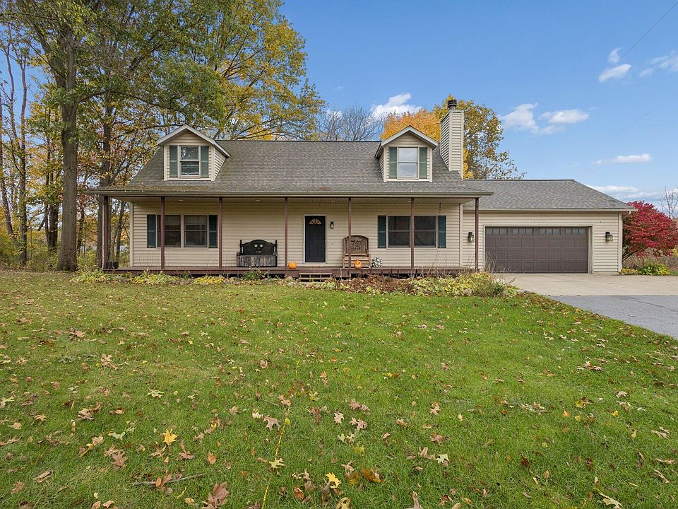This Cape Cod Style, four bedroom, three and a half bath home sits on two acres in Marshall Twp. The kitchen has been recently redone and is very spacious. Primary suite is on the main floor with the remaining three bedrooms upstairs along with a full bath. There is a half bath on the main for guests and a full bath in the basement that will be a great addition for a movie room or bedroom, the possibilities are endless.