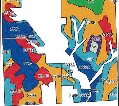 160 ac +/-, frontage road on west and south. Property has electric utilities to house and sheds and three wells on property. Partially finished two story house, three bay (6 car) concrete garage and shop. Two machine sheds, small hay shed with pond in pasture.