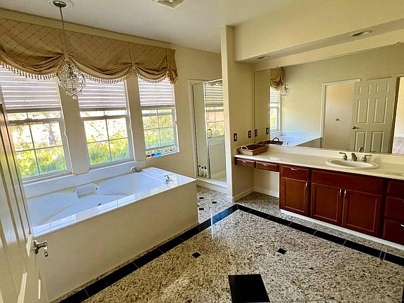Large master suite with 3 walk-in closets and a relaxing jetted tub