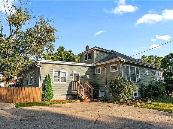 Welcome to this charming corner-lot residence that blends character with an excellent location. Offering 3 bedrooms and 2 full baths, this well-maintained home features versatile living space, a full unfinished basement, and a 2-car detached garage. The flat-roof portion of the home is rubber and was just resealed in 2023, adding to its durability. A large, fully fenced yard with a newer stamped-concrete patio is perfect for outdoor enjoyment, while sidewalks and mature trees frame the setting. The property is adjacent to a community park and just moments from the local downtown area with its variety of shops, restaurants, train, expressways, and entertainment. Newer sage aluminum siding enhances curb appeal, and the Ring doorbell with exterior cameras will remain. Inside, the inviting family room showcases exposed wooden beams, a fireplace with gas logs, gas starter, and matching beam-style mantle, all complemented by luxury vinyl plank flooring and a wall A/C unit. The kitchen is designed with durable vinyl flooring, recessed lights, tiled backsplash, and a full stainless-steel appliance package, including gas oven/range, dishwasher, microwave, vent hood, and refrigerator. The dining room impresses with 9' ceilings, original crown molding, hardwood floors, stained glass windows, a ceiling fan, and French doors that flow into the living room. The living room continues the timeless style with hardwood floors, additional stained glass windows, custom built-ins, and 9' ceilings. The main level includes two bedrooms, each with hardwood flooring, ceiling fans, and spacious closets-one offering a large walk-in. Vintage-style two-panel doors run throughout. Upstairs, the private primary suite offers a retreat with wood laminate flooring, recessed lighting, newer vinyl windows, portable A/C, and a private full bath with tub and tiled shower, as well as an open space for an at home office. The unfinished basement provides excellent storage, laundry with front-loading washer & dryer, exterior access, a 200-amp upgraded breaker box, and a timer for the outdoor lights. Mechanical updates include a gas boiler and a gas hot water heater (2018). This home is being sold AS IS and is ready for its next chapter.