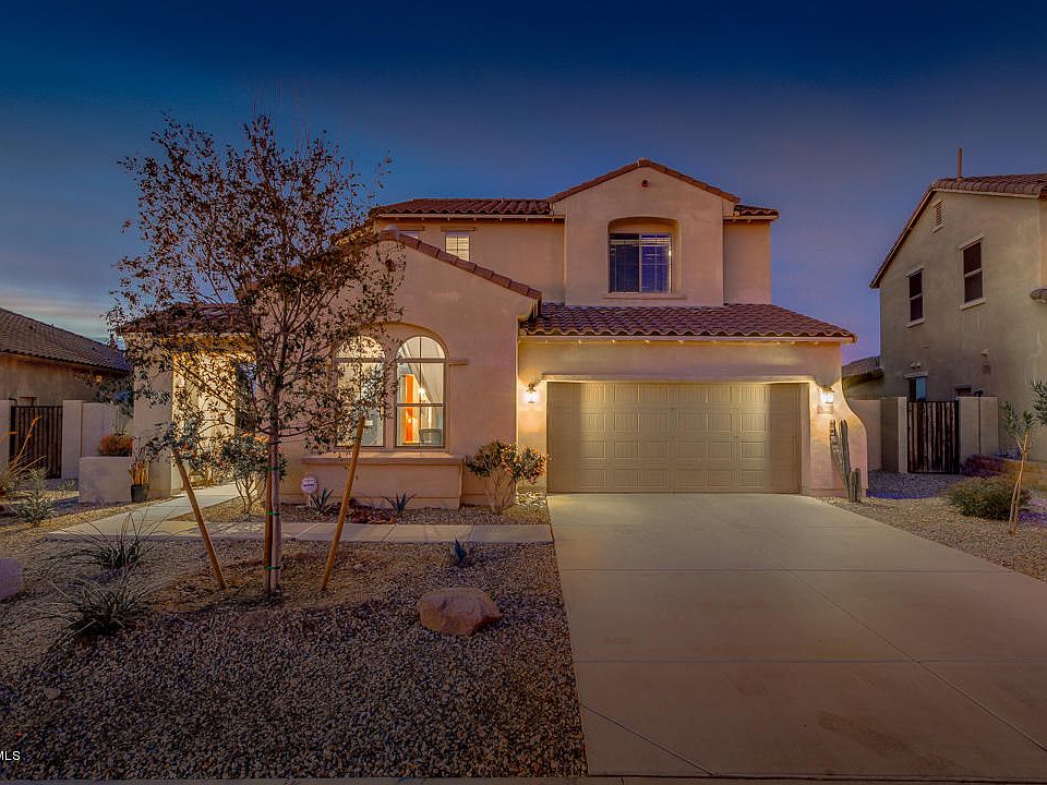 Meticulously maintained home with downstairs Private master bedroom, large private office / Den with its own bathroom, on a premium view fenced lot perfect for the executive, first time home buyer or vacationer. Compare to New builds and save $$$ (must see pictures). The open concept is the ultimate entertainers delight! Kitchen boasts of upgraded cherry cabinets, built in Buffet, walk in pantry, tons of cabinetry storage, large eat at Island, Granite counter tops, with custom back splash & SS appliances. This home truly is a gorgeous blend of style and functionality with amenities & features of much higher priced homes - -too many to list! Floor plan is superb to perfection. Front Courtyard and rear private patio -Fireplace in great room,, home has formal dinning room, architectural staircase with rare romeo and Juliet step up bedroom that can be used as a teen room or theater room. Estrella MTN Ranch is a master planned community Surrounded by majestic mountains and wide-open desert vistas, life in Estrella is a masterpiece of harmonious balance is...dynamic, yet serene - offering something for everyone no matter what stage of life. Truly a resort-inspired lifestyle with state-of-the-art amenities awaits. see document tab for brochure on HOA inclusive perks!