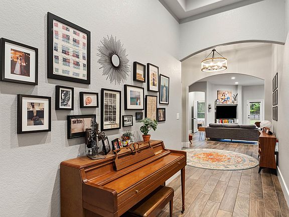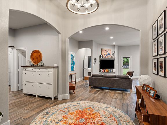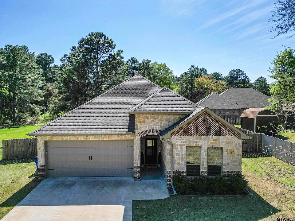 Modern and inviting 3 bedrooms, 2.5 bathroom house with innovative floor plan and low utility bills! This home is located in Hide A Way in Flint with Bullard Schools. This neighborhood is very quiet and peaceful while offering a strong sense of community and neighborhood activities. From the house it is a short walk to the community pier/lake access as well as a pickleball court. This home has solar panels that will stay with the house, with the remaining 25 year warranty, as well as spray foam insulation amounting to an average electricity bill of $60/month. The exterior of the home features an attractive rock and brick finish with accented landscape lighting. Upon entering the home you will notice the extensive crown molding as well as the wood look tile in all high traffic area. The 2 front bedrooms share a bathroom with double sink. The flow through the center of the home is unique with large vestibule that can be used as sitting area as well as large mudroom which could easily hold a desk. There is a half bathroom off of the mudroom for your guests and a large laundry room with a barn door. The living room, kitchen and dining room flow seamlessly together and have large windows overlooking the backyard. The master bedroom has windows to the exterior and features a large en-suite bathroom with double sinks, soaking tub, walk in shower as well as a walk-in closet. The backyard is fully fenced and has a 8 x 12 storage building and an above ground swimming pool. The garage has been outfitted for a wood workers dream - all the tools and built in items will leave but the mini-split and insulated garage doors come with the house! Come check this home out today!