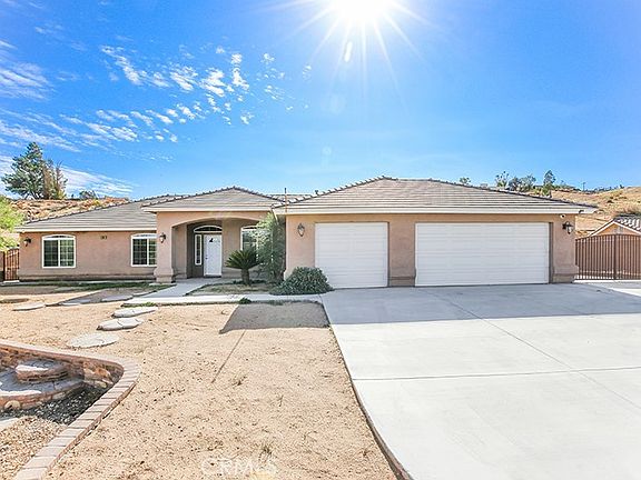 Luxury Living located in one of the most sought after areas of Hesperia...Great views of the nice hillside!!! Beautiful wrought iron remote gate in front driveway leading you to the three car attached garage.The property features vaulted ceilings, open floor concept, with tile flooring, recess lighting throughout the property, has four spacious bedrooms, two full baths.The kitchen is connected to the great room and living space, this beauty is spacious and has ample amount of natural light! The master bedroom is spacious, with an attached spa like master bath, jacuzzi, stand shower, a separate vanity area!!! The backyard has a covered patio with a basketball hoop set up, perfect for entertaining, and spacious enough for RV & boat parking!! Call to schedule your private tour today!!!!