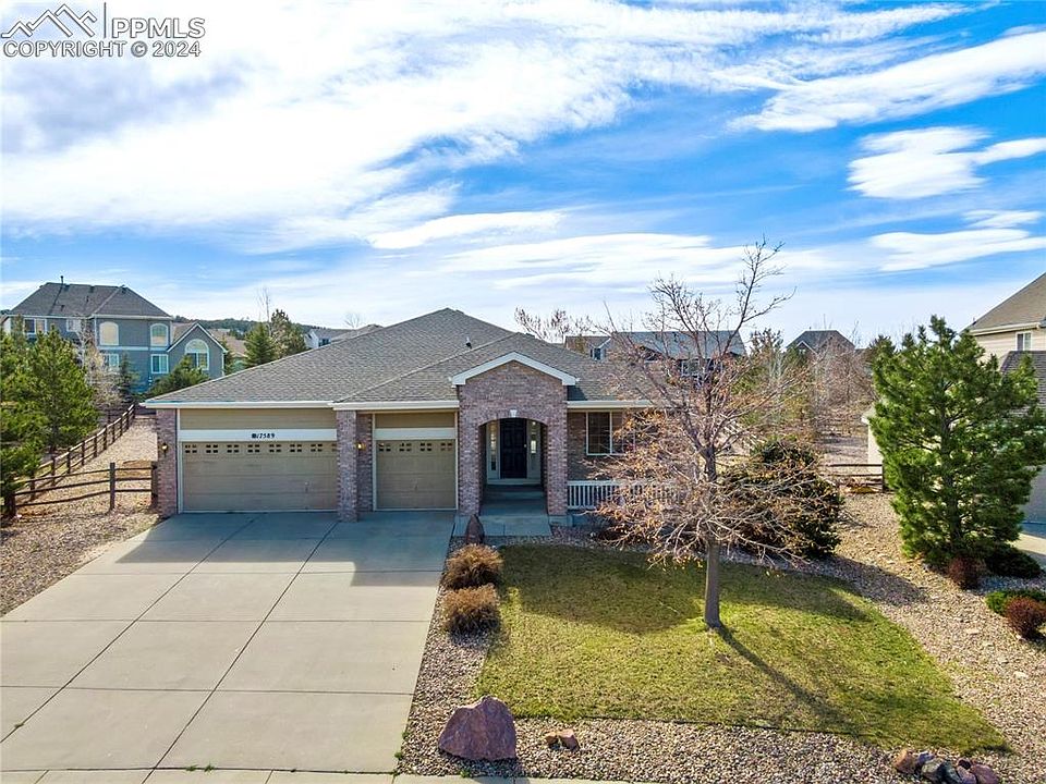New paint, giant lot, amazing mountain views, finished basement, 6 bedrooms, and so much more! Welcome to this amazing find in Woodmoor. The modern, upgraded kitchen boasts double ovens, gas range and hood, farm-style sink, beautiful quartz countertops, and walks out to the backyard patio. The open floor plan allows for a spacious and inviting atmosphere where everyone can gather. The living room is highlighted by the gas fireplace and charming built-ins. The large dining room can fit a sizable table! Work from home? The office features amazing french doors! Moving onto the bright and airy primary bedroom, which includes 2 walk-in closets, an attached 5-piece bath, and plenty of natural light. Also on the main level are 2 additional bedrooms, a laundry room with both gas and electric hook-ups, and 2 bathrooms. Downstairs, the finished basement gives you so much more livable space! With 3 more bedrooms, another laundry room, full bathroom, storage space - this basement is amazing. There is also hook-ups for media room equipment. The backyard just might be one of the best parts allowing for amazing outdoor living areas. You'll enjoy the 3 car garage, new paint, convenient location, and stunning views! Come check it out!