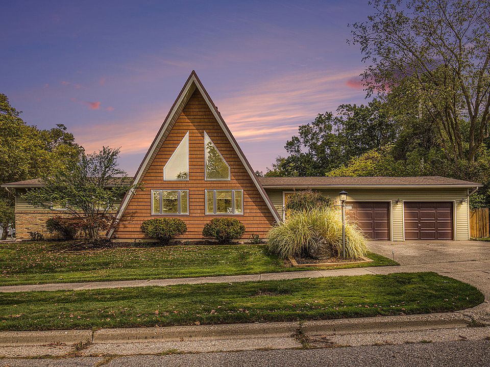 Welcome to Briarcliff Drive! This unique A-Frame home offers both character and privacy, tucked away at the end of a quiet street. Step into an open-concept floor plan highlighted by a tall brick fireplace illuminated by large picture windows, perfect for cozy evenings. Other trademarks of this home include an inviting in-ground pool (winterized for this year, painted in 2022) and a spacious loft, with private balconette, that can serve as a fourth bedroom, home office, or flex space.