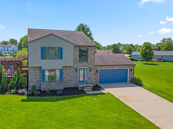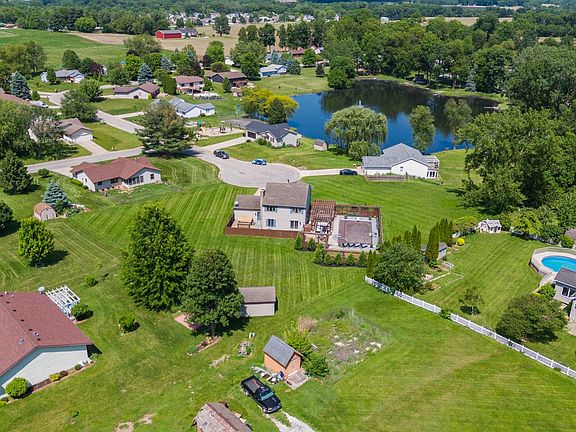 Over 3,000 finished sq ft of living space! Three finished levels, an open concept, numerous updates and a stunning one acre setting at Lincoln Park. Located at the North side of US 30, this ideal location is conveniently close to schools, major retailers and employers. Make this spacious home, yours and enjoy days relaxing in the hot tub, enjoying the oversized backyard, private patios, fire pit area or the fantastic in-ground pool area and bar. As you enter the front door, you'll fall in love with the beautiful laminate flooring that leads you to the front living room. An open concept awaits you with white cabinetry, stainless appliances, island with breakfast bar and adjacent dining area. Which opens to the family room with fireplace and access to the private backyard patio and entertaining areas. The second level hosts the primary suite with double sink vanity and tile walk in shower. As well as additional bedrooms and full bath. At the lower level, you have space to create a rec room or home theatre area. With a bonus guest room and full bath! Whether looking to entertain friends and family or enjoy the privacy of your own space, this home is for you!