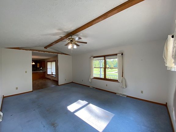 Discover serenity in this spacious Madison ranch , nestled on 4.5+ acre. Boasting 3 bedrooms and 2 baths with 1704 sq ft, this charming residence offers the convenience of first-floor laundry. Upon entering, you'll appreciate the inviting layout, perfect for gatherings with family and friends. The kitchen seamlessly flows into adjoining living spaces, creating an ideal environment for making memories. The full unfinished basement is a blank canvas. Whether you envision a cozy entertainment area, a home gym, or hobby room, the possibilities are endless. For those needing extra storage, a 2.5 car garage provides ample space, and a separate 24 x 32 pole building offers even more storage capacity. One of the property's highlights is the expansive front porch, where you can unwind and savor picturesque views of the pond and surrounding natural beauty. Don't miss your chance to make this exceptional property your own and create lasting memories in this idyllic setting.