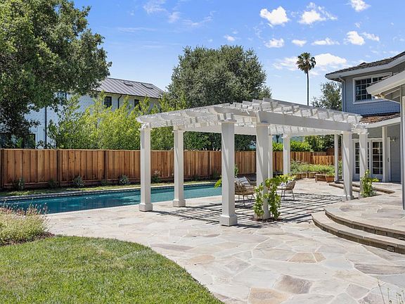 Fantastic executive style immaculate 4 BR home on 0.59+ acre estate in highly desirable serene Los Altos court. Built 2004, the home offers quiet sophistication & high functionality in its formal living, dining & extra spacious great room with surround sound & high ceilings. Chefs Kitchen features distinctive slate counters, high-end appliances, Sub-Zero refrigerator, custom cabinetry. Beautiful French doors lead to an exquisite private garden oasis with large patio, pergola, lush lawn, heated pool, spa, fruit trees, planting areas & short walk to scenic bank of Stevens Creek. Great work/relax at home options with office/library in ground floor master suite with direct access to pool/spa; double sinks, heated floors & towel warmer in bath. Tray ceilings, recessed lighting, skylights, large windows throughout. New redwood fencing, owned solar. Ideal location close to top rated schools, shopping, restaurants, parks, library, hospitals & commute routes.