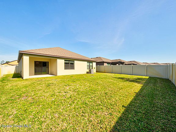 How does a 3.7% assumable mortgage sound? call for details, You won't want to miss seeing this beautiful spacious 4 bedrooms, 2 full bath home, Open floor plan, kitchen features a large island and pantry. Stainless-Steel Appliances. Relax in your large Main Suite with walk-in shower and a double vanity, large walk-in-closet and linen closet. Spacious three other bedrooms. New AC, freshly painted, new sod 2022, Window Blinds. hurricane shutters, fully fenced back yard, community features a large pool, playgrounds, walking trails, fishing docks, Close to Schools/Dining and Shops. Easy access to I-95, 30 mins to Orlando, approx. 20 mins to Beach.