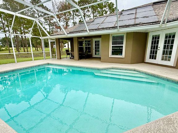 Welcome to this beautiful POOL home nestled on 1.5 acres in peaceful Meadowglen Farms neighborhood in Alachua, FL. This inviting 4 bedroom/ 3-bathroom home offers a perfect blend of comfort, style, and versatility, making it ideal for homeowners looking for unique living spaces coupled with convenience. Step inside to a great room with a fireplace that overlooks the screened-in saltwater pool and patio, to an updated, modern kitchen with stainless steel appliances, ample cabinetry, a separate coffee bar area and a generous breakfast bar and nook, as well as a formal dining room—perfect for hosting parties and family meals. There are two spacious living areas that boast plenty of natural light, creating warm and welcoming spaces for gatherings, unwinding with a favorite TV show or a book. The home has an owner’s retreat that opens on to the pool area that includes a large walk-in closet and an en-suite bathroom with an oversized dual-head shower. Enjoy outdoor living in the expansive 1.5-acre lot that has a fully fenced yard with additional back and side yards which is ideal for outdoor activities and gardening. Additional features include an exterior storage building, an updated laundry room with a sink, a two-car garage and a double driveway with extra paved parking for guests. Roof age is 2021, HVAC 2019, Water Heater 2025. Located just minutes from local schools, shopping centers, rivers and springs and only 5 minutes to I-75, this home shouts convenience!