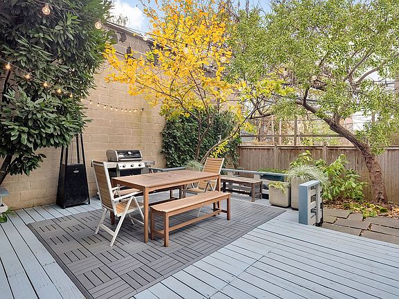 The private backyard is lush and fabulous! Ideal for hosting or as your private retreat, throughout the year you'll find a diverse array of plant life including a cherry laurel tree, eastern redbud tree, hydrangeas, English ivy, creeping jenny, and many more. The recently improved and oversized deck makes this space an incredible extension of your living area.