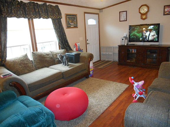 Home has a block foundation and a large deck. Also a new shop building, a fenced back yard for your kids or pets. The play set conveys.