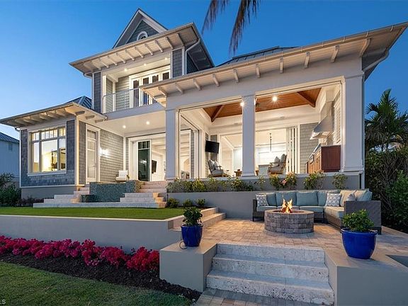 Discover the meaning of luxury living and one of the finest long water views in Conners. This enchanting residence, built in 2016, has long sweeping water views and highly-desirable southern rear exposure. This Sand Dollar Award winning masterful collaboration between Stofft Cooney and BCB Homes is sure to delight even the most discerning buyer. The spacious great room floor plan with voluminous ceilings leads to a covered lanai with hidden motorized screens, summer kitchen, open-air dining area, infinity edge spa, fire-pit, and dock with a platform lift for true indoor-outdoor living. The first-floor primary retreat features a spa-like ensuite and a generously sized walk-in closet. On the second level an oversized study, which could be a fifth bedroom, and additional guest bedrooms and baths provide comfortable accommodations for owner and guests alike. Located just steps from Vanderbilt Beach off Gulf Shore Drive, this is a fantastic home for beach lovers and boaters alike. This an exciting opportunity is not to be missed!