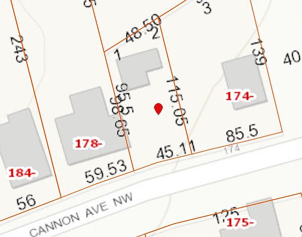 176 Cannon Ave NW This is a lot that has a small carport and storage area that can be removed to be developed into a single family home.