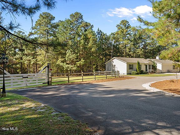 Cozy Cottage on 5 acres in Horse Country with Walthour-Moss Foundation access for landowners and their guests! Thoughtfully designed for mini-driving ponies, the 3 stall, center aisle barn has 10x12 stalls which could be suitable for horses as well. The barn also features Equi Terr flooring, Dutch doors, tack room, grooming stall, feed room, storage rooms/workshop, wash area with hot and cold water; heat lamps over center aisle. Tack room and workshop have HVAC. A covered breezeway attaches the barn to the house; plenty of parking, circular driveway and beautiful landscaping complete this charming mini-farm. House offers open concept living/dining/kitchen combo with vaulted ceiling. Dining room opens to a screened back porch with adjacent patio overlooking the pastures. Three bedrooms and two full baths complete the picture. The primary bedroom overlooks the back pasture with plenty of natural light coming in. This rare private and peaceful getaway is just minutes from downtown Southern Pines! All furniture is available for purchase.