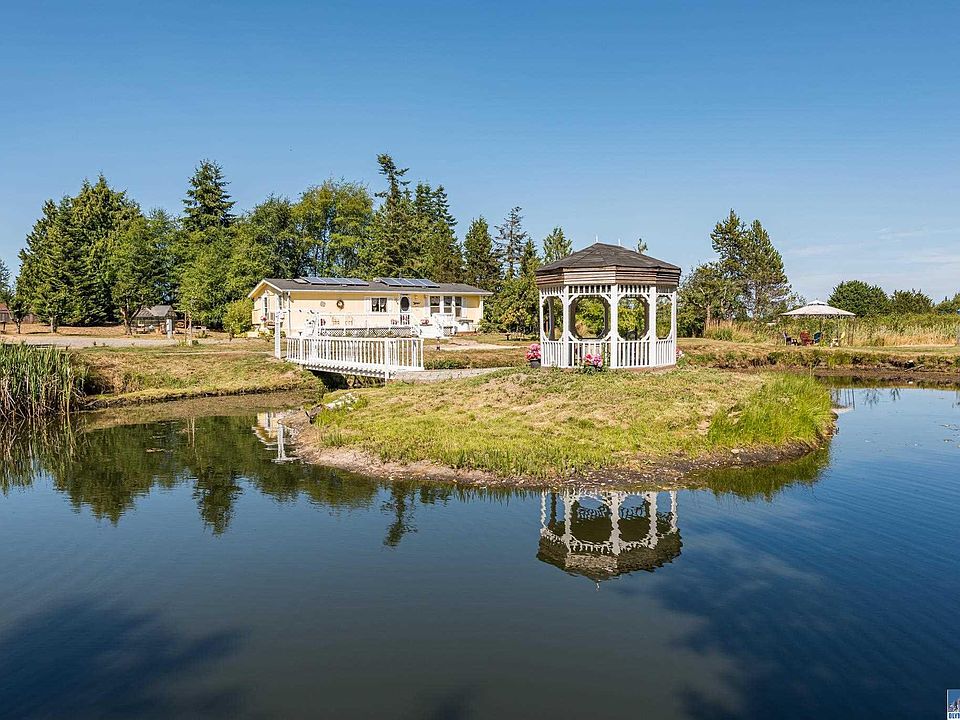 A Hidden Gem! Gated Country home on 6.67 acres in a private park-like setting with a large, deep pond, 2 gazebos, rock waterfall & bridge. Updated 2 bedroom 2 bath manufactured home with large front porch and a wood burning stove to keep you warm on winter nights. Detached 2 car garage and RV Parking. Area for livestock. Fruit trees, garden space, a greenhouse & even a resident peacock. Very private location. Located close to Olympic National Park & John Wayne Marina for boating & fishing. No CC&R's or HOA.