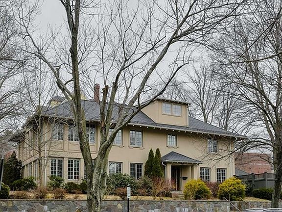 Impressive, Stucco Arts and Crafts Colonial in elegant Fisher Hill. Expansive first floor includes custom designed kitchen, dining area, half bath, living room with beautiful, custom marble mantle, family room with custom built-ins and abundant, large windows throughout, allowing for incredible natural light. The second floor master includes a library or sitting room, large en-suite master bath with jacuzzi and a cathedral ceiling. Three additional bedrooms and two additional full baths complete the second level. The third level can be used as a large guest suite, or au pair suite and includes a full bath. The basement could be finished for additional living space and includes a large storage room. Other amenities include security system, a/c remote, Nest system Two car garage, private, enclosed patio and private driveway. Steps to coveted Runkle school, the T. Situated on a corner lot among other lovely homes on a gorgeous street