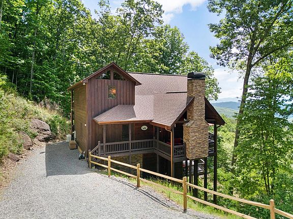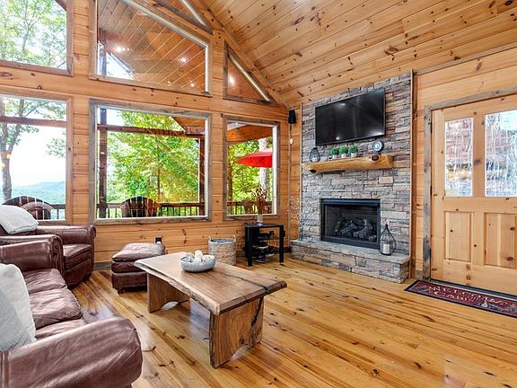 This furnished 4-bedroom, 3-bathroom home offers the perfect blend of comfort, convenience, and breathtaking views. Nestled in the Aska Adventure Area, this stunning cabin is an ideal investment for short-term rentals or year-round living. As you step inside, you'll be greeted by an inviting open floor plan flooded with natural light from the large windows, showcasing picturesque long-range mountain vistas. Cozy up by the fireplace in the main level living area, or gather around the breakfast bar in the well-appointed kitchen featuring stainless steel appliances. Escape to your private sanctuary upstairs, where the primary suite awaits with its own ensuite bathroom with jetted tub and a tranquil private balcony. The finished basement offers even more space for relaxation and entertainment, featuring another fireplace in the living area, a gaming area, and a convenient wet bar. Two additional bedrooms and a bath downstairs provide ample accommodations for guests or family members. Outside, the expansive porch wraps around the house, offering plenty of room for outdoor enjoyment. Soak your cares away in the hot tub, or gather around the covered porch area with its own outdoor stone stack fireplace, creating the ultimate setting for al fresco dining or cozy evenings under the stars. With the added convenience of a Generac generator, you can rest easy knowing that you'll always have power, no matter the weather. Schedule a tour of this magnificent cabin, tucked away in the Chattahoochee National Forest, minutes from the Toccoa River, Lake Blue Ridge and upscale dining and shopping in the downtown area.