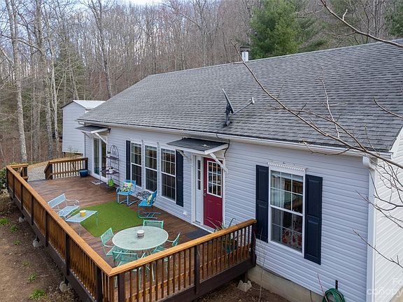 Looking for complete privacy with room to grow? This home is what you are looking for, complete with turnkey off-frame modular with open floor plan and gas log fireplace. Home sits on 5+ acres and includes 3 additional homesites for future homes or income opportunities. Shared Well and Underground utilities in place for all sites. Hear the bold creek sounds from down below while sitting on the large open front porch. Storage/Workshop building in place with electricity. Beautifully landscaped with 360 Winter views and potential for some summer sweeping interior mountain views. Convenient to Franklin, Sylva, WCU, SECC along with shopping, breweries, dining and much more!