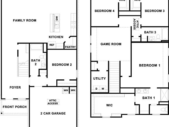 The Nicole features a well-conceived two-story layout with 2,509 square feet, 4 bedrooms, and 3 bathrooms. Enter the foyer and find a roomy family room that connects to the kitchen and dining space ideal for hosting guests. The kitchen features granite surfaces, a tiled backsplash, stainless steel appliances, and a central island. A secondary bedroom and complete bathroom are situated off the foyer, perfect for visitors or a home office. On the upper level, there are two more bedrooms, a complete bathroom, a laundry room, a spacious game room, and the private master suite. Bedroom 1 boasts an expansive design, a large walk-in closet, and a roomy walk-in shower. This residence features a meticulously designed and watered garden with a spacious covered patio. Additionally, take advantage of smart home capabilities with the HOME IS CONNECTED base package, featuring Alexa Voice Control, a doorbell, smart deadbolt, home hub, light switch, and thermostat.