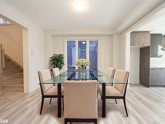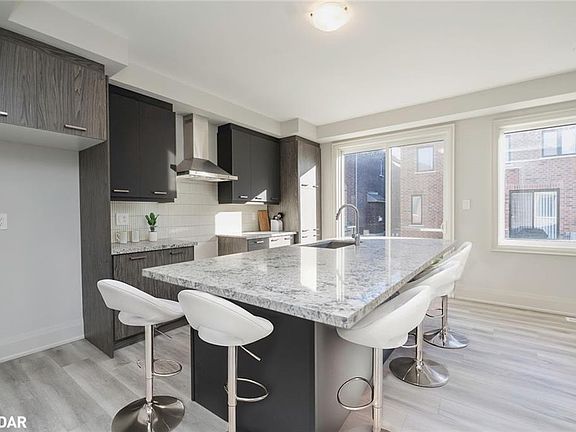 LUXURIOUSLY UPGRADED BRAND-NEW HOME WITH DESIGNER FINISHES & 2,448 SQ FT OF ELEGANT LIVING! Proudly presenting 176 Durham Avenue, the Rothwell Model by Honeyfield with 2,448 sq. ft. of upscale living and premium upgrades. Featuring a brick-and-vinyl exterior with modern black accents and a welcoming covered porch, this home embodies contemporary elegance within a vibrant master-planned community. Enjoy high-quality wood composite and tile flooring, smooth ceilings, and an enhanced stair and trim package. The open-concept kitchen is a showstopper, featuring two-tone cabinetry, Caesarstone quartz countertops, a chimney-style range hood, valance lighting, tile backsplash, and a large breakfast counter with seating for seven. The adjoining great room showcases a 50" linear electric fireplace with a tile surround and recessed LED pot lights, while a main-floor den or office and separate dining area add versatility. Upstairs, the primary suite impresses with a tray ceiling, walk-in closet, and a luxurious 5-piece ensuite featuring quartz counters, dual sinks, soaker tub, water closet, and a frameless glass shower with a storage niche. The second bedroom includes its own 4-piece ensuite, while the third and fourth bedrooms are connected by a beautifully appointed 4-piece shared ensuite. A convenient second-floor laundry room includes overhead cabinets and a clothes rod for added functionality. Additional upgrades include 24" basement windows for enhanced natural light, a 200-amp panel, rough-ins for a central vacuum and an EV charger, and plumbing for a future basement bathroom. The attached double-car garage provides inside entry to the mudroom, while the driveway accommodates two additional vehicles. Ideally located near Highway 400, the Barrie South GO Station, schools, shopping, trails, Friday Harbour Resort, golf, and recreational facilities, this exceptional #HomeToStay is covered by a 7-year Tarion warranty for peace of mind.