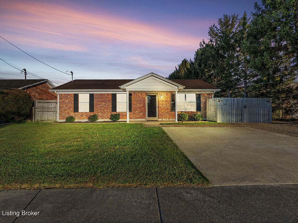 Brick ranchFlat fully fenced lotUpdated kitchenStainless steel appliancesCovered front porchLarge backyard patio