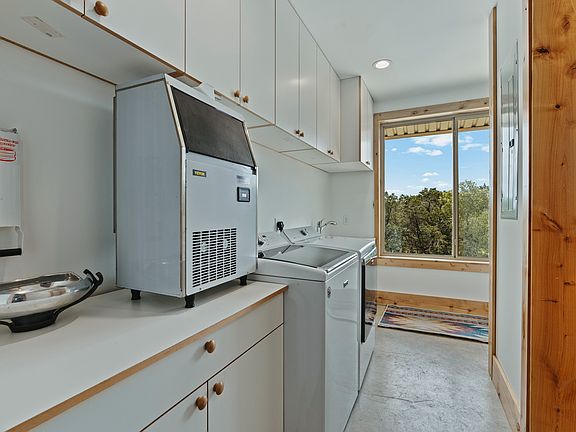 SO MUCH MORE THAN JUST A HOUSE! This remarkable Hill Country steel constructed barndominium boasts over 7,000 square feet of climate-controlled living and potential income-producing space and presents endless possibilities. This home is built to last, with double-insulated walls and climate-controlled areas ensuring energy eff. and a monthly average electric bill of just $250. The 4,500-square-foot downstairs shop comes equipped with a dedicated living space with kitchenette that can serve as an office, rental or even guest quarters with full bath and a mechanical room prewired for a washer and dryer. The expansive air-conditioned shop can be used for a variety of projects, hobbies, or income generating, or even housing a luxury car collection. With 14-foot ceilings, four 80-amp power drops, and additional 30-amp outlets, the property provides ample space and electrical capacity to support a wide range of uses. The spacious 2500 sq. ft. upstairs main residence features 3 beds and 2.5 baths, with soaring 16-ft ceilings and an open floor plan that lend a truly remarkable living experience. The solid steel pivot entry door and exterior elevator add an elegant, convenient touch. Stepping outside, the 2000 sq. ft. balcony offers unobstructed views of the surrounding rolling Hill Country, creating the perfect setting for an outdoor kitchen/ shower (hot/cold water connections), or simply taking in the stunning vistas. With its strategic location just 60 mi. from Fredericksburg, 10 mi. from Gruene, and 5 mi. from the Whitewater Amphitheater and the Guadalupe River, this property provides endless opportunities for exploration, while the SA and Austin airports within a 50 mile radius make it easily accessible. The impressive features continue with a well that taps into two aquifers, and an 8,000-gallon cistern for additional water storage. NO CITY TAXES & NO HOA! This property offers the ultimate freedom, and privacy!