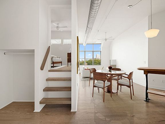 Industrial touchesIncredible open viewsEnclosed sleeping loftWall of windowsOriginal oak floorsIn-unit laundryAmple extra storage