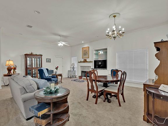 When convenience and security is a priority, Kings Crossing is your community. Superb open floor plan with huge den with dining room area. Kitchen with island, breakfast area, & breakfast bar. Main bedroom is very large with walk-in closet, dbl vanity, stand up shower with bench and a walk-in jetted tub. No shortage of extra space. Peaceful sunroom for your quiet moments with new floor. Could have many other extra uses. Extra storage room inside the house with shelving and backyard access. This is a huge bonus for holiday decorations, gun safe, and so much more. Not done yet, there is another bonus room that could be an office or hobby room. (Could be 4th bdrm) New roof April 2025, HVAC system is just 4 years old. The comfort of knowing that the home has been well cared for and ready to be your new home.