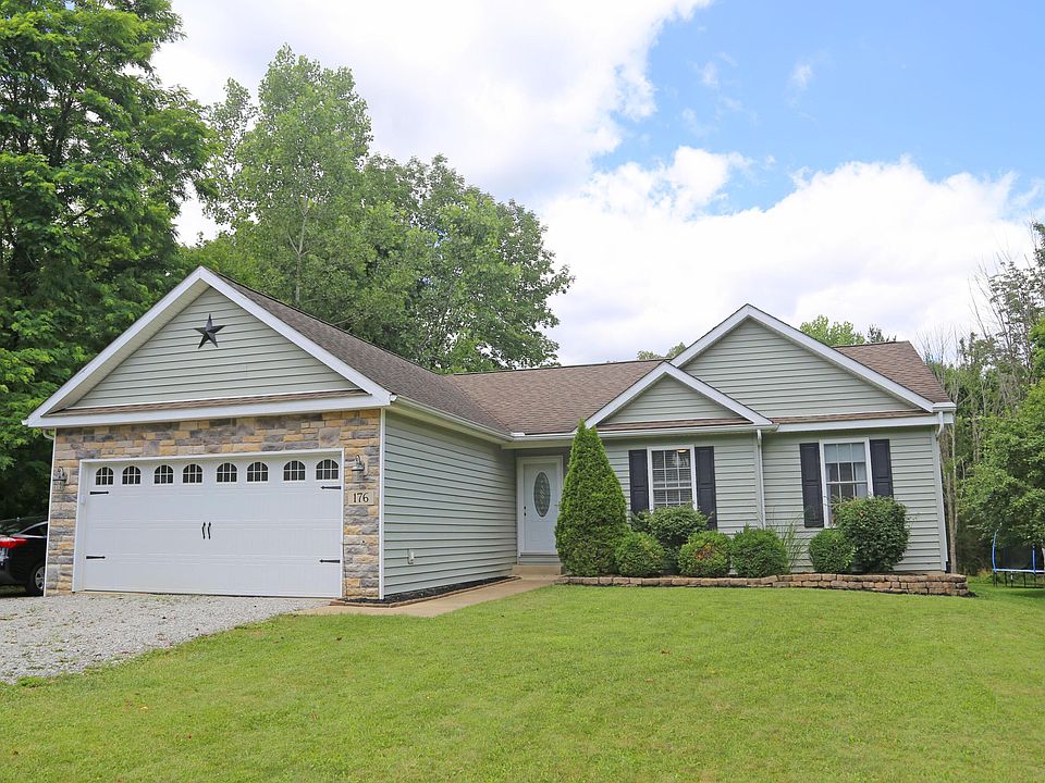 Beautiful Apple Valley ranch with a great location, this home offers 3 bedrooms and 3 full baths, an open great room floor plan with vaulted ceiling living room and gas log fireplace, adjoining dining area with hardwood floors and glass sliders leading to the rear deck, custom cabinet filled kitchen with granite countertops, stainless steel appliances and farmhouse sink, convenient main level laundry, walk in pantry, primary bedroom suite with custom private bath and walk in closet, finished lower level with second living room and full bath, tons of storage space, relaxing rear deck and fantastic level back yard, attached 2 car garage with oversized driveway for boat, trailer or RV, truly impressive home that won't last long at $329,900.