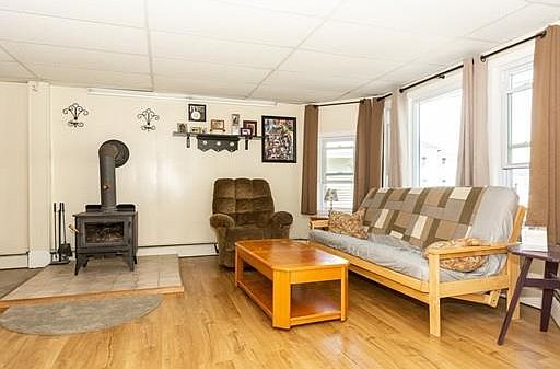 Are you looking for an Open Concept 4 bedroom home? Do you need an office? Would you like 1st floor laundry and 1.5 Baths? How about a beautiful back yard plus off street parking for 3 cars? This home has all that and more! Keep your heating bills under control with the Wood Stove + Hydro Therm Boiler + blown in insulation+ new windows. Spacious enclosed front porch and bonus rear mud room. Basement features concrete floor, loads of storage and a pool table. What are you waiting for? Schedule your appointment today!