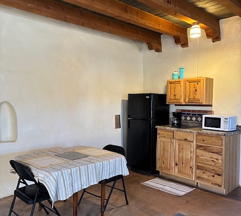 Clean, quiet furnished studio adobe home available in Ranchos de Taos. Walking distance to Holy Cross Hospital and lots of hiking trails in the Weimer Foothills. Perfect for a single professional, remote worker or retiree. Home includes kitchenette area, full bathroom, fenced front and back yard. Peaceful setting. All utilities included (gas, electricity, water, trash, sewage). Non-smoking home. Long term or short term. Message for more details or to schedule a viewing.
