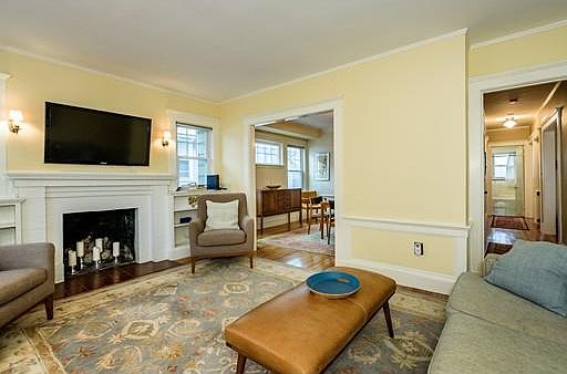 Gracious oversized 2 level condominium located in a classic Boston Colonial-style home. This home has 4 bedrooms (3 with walk-in closets), family room, and office. Great architectural details include hardwood floors, crown molding, and two decks. Dining room with wainscoting, and built-in hutch with leaded glass. Walk-through pantry leads to the eat-in kitchen with white shaker cabinets and ceiling fan. The living room has a handsome white fireplace mantel, wall-to-wall built-in bookcases, and chair rails. Great light throughout in this upper-level unit filled with updated windows. Terrific commuter location, only 0.7-mile walk to the Commuter Rail, minutes to Faulkner Medical Area and Longwood. Steps to 51 bus stop, connecting to Green and Orange lines. Short walk to Hynes Field, Walking Track, and Playground; the Shoppes at Hancock Village; and shopping and dining on Centre Street. Less than 10 minutes to shopping, dining, and movies at Chestnut Hill and Dedham Legacy Place.