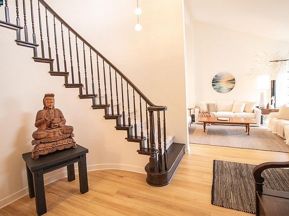 **Back on the market due to Buyer finance issues--previously in contract for $890,000!** Newly remodeled with soaring cathedral ceilings and owned solar, do not miss this gem! Enter through the stunning two-story grand foyer with updated dark stained wood stair railings and be bathed in all the natural light. The kitchen features a gorgeous and functional center island, newer, high end appliances, and tons of natural light. There is one bedroom and bathroom downstairs, creating perfect privacy and access for guests, grandparents, or an au pair. Relax after work in the spa quality primary retreat, which features vaulted ceilings and new vanity. Enjoy the open space behind the lot, take a walk on the beautiful trail with incredible sunsets and views of the entire city. Pride of ownership radiates throughout this well thought out floor plan. Do not miss this opportunity to own prime Bay Area real estate with ferry access to the heart and soul of the bay, San Francisco!