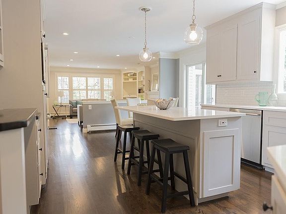 Everything you want, Pristine Home with perfect use of space. Design... Detail... Location. Close to Train, Walk to School, Close to Town - ALL in a quiet neighborhood. Entertaining space inside & out. White quartz kitchen counters & subway tile backsplash w/new appliances! Detailed trim through-out this home, hardwoods in every room. Family room with white brick fireplace & built ins. New lighting & plumbing fixtures. Second floor with 4 huge bedrooms. Closet space, Pantry space, Mudrooms, Huge Laundry room. Bright finished basement w/ oversized tile floor - separate room for guest w/ attached bath! New exterior screened in porch w/mahogany decking over looking private backyard and step down bluestone patio! Sport court! Gorgeous landscape all around, new driveway & front granite walkway. Walk to Mitchell. Privacy all around. Don't miss this opportunity to be in an amazing home in a top Needham location.