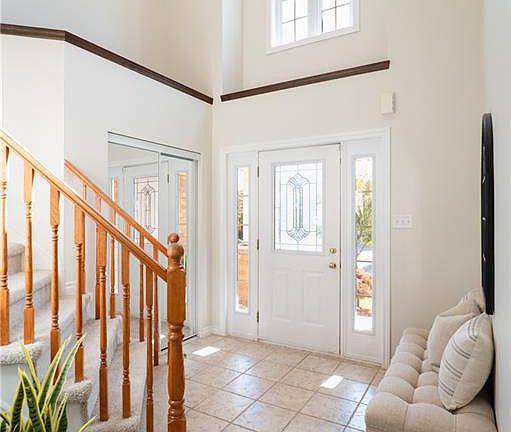 Extra deep lotDouble car garageCovered front porchExtended drivewaySpacious two-tier composite deckBright foyerSoaring ceilings