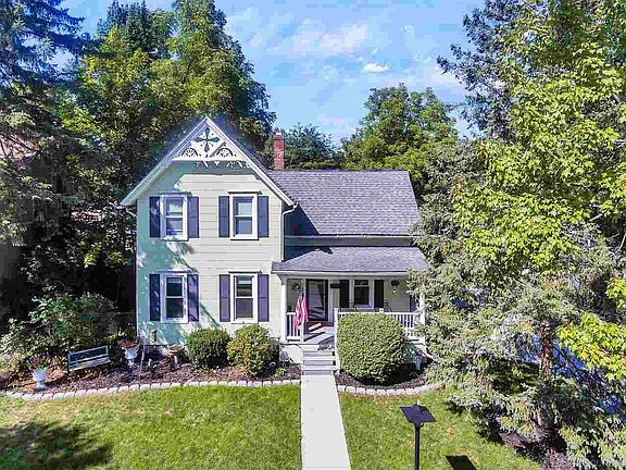 Pleasant Street Historic Classic Farm Home, located just a street away from famed Tillson! Offers a newly installed Concrete Drive, Large Fenced Yard & updated interior: 3 Bedrooms (one on 1st floor & two upstairs: Upper Bedroom #2 is a large "pass thru" Bedroom opening to another generous 3rd Bedroom). Gorgeous 1888 original Eastlake Era Wood Casing, Trim & Moldings with five panel solid wood doors gives this home the charm of an a time gone by. Covered Front Porch (with electrical) opens to tall ceilings, spacious front Dining Room & Living Room featuring low maintenance deep walnut, laminate planked floors. Kitchen & both Full Bathrooms are freshly updated. Well maintained mechanically sound home, complete with a 1-Yr America's Preferred Home Warranty.