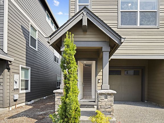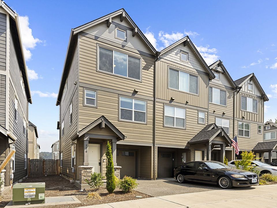 Welcome to this beautifully designed 3-story townhome offering both comfort and flexibility. The upper level features two spacious bedrooms and two full bathrooms, while the ground level provides a versatile studio/bedroom with its own full bath and private access through the garage and backyard, perfect for guests, a home office, or multi-generational living.Enjoy soaring 9-foot ceilings in the kitchen and living room, an electric fireplace for cozy evenings, A/C for year-round comfort, window blinds, and a fully fenced backyard ready for outdoor living.Ideally located near shops, restaurants, Troutdale Station food carts, and McMenamins Edgefield, this home blends modern convenience with a vibrant lifestyle. Come see it today!