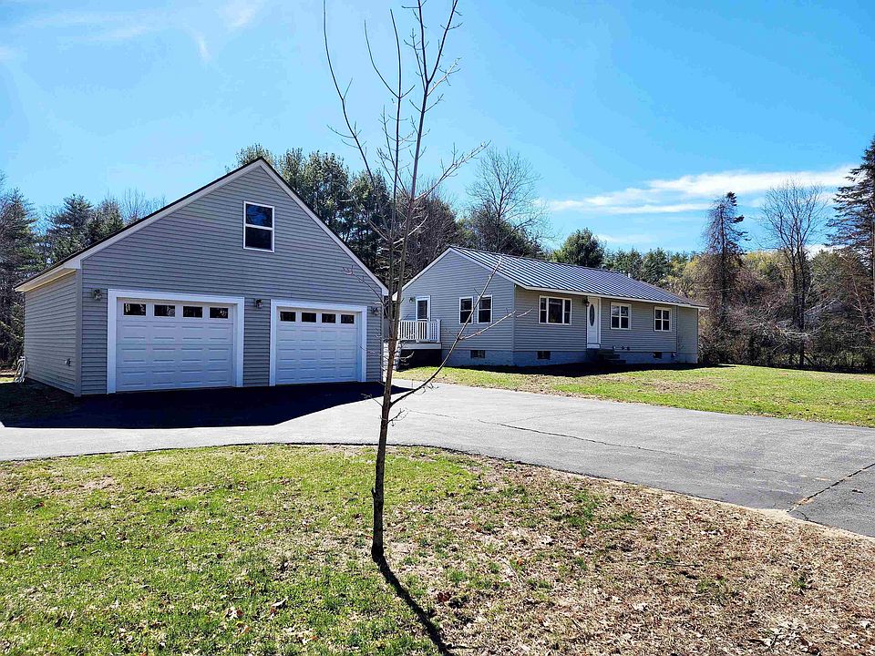*This home* Concord NH beautiful functional floorplan ranch sited on a generous 2-acre lot with wooded back area abutting Beaver Meadow Golf Course. 2019/20 this property was renovated by craftsmen from the studs with intentional quality finishes and fixtures making this a turn-key gem! All NEW surfaces - walls, floors, ceilings, lighting, stone material countertops throughout, new cabinetry, custom kitchens & baths. Also new- most vinyl windows, interior and exterior doors too! Enter into a stunning open concept common living space with kitchen and living area featuring a cathedral ceiling. 1st floor bath/laundry 2 Bedrooms, a room that can be used for any desired multipurpose entering to and a generous sized 24" x 16" primary suite. Downstair living area has access via interior stairway from the living area OR private entrance thru the walk out lower level. This level features finished bonus space- 2 large rooms, a second full kitchen and another custom full bathroom, offering this property the perfect in law/ADU space. There is a 2-car detached garage w/ new garage doors automatic openers and even more available storage space or room to finish up overhead. There is a level private back yard to enjoy the outdoors, nearby walking trails, boat launch to the Merrimack River and other area attractions. Located 10 minutes from interstate 93. Convenient to both downtown Concord and lakes region! Showings by appointment, property is monitored by home security cameras.