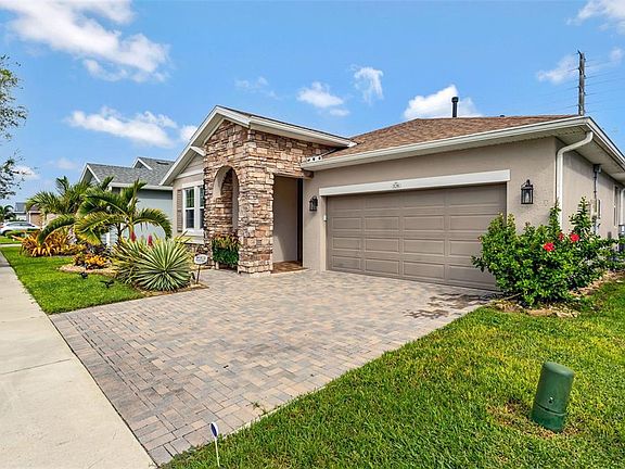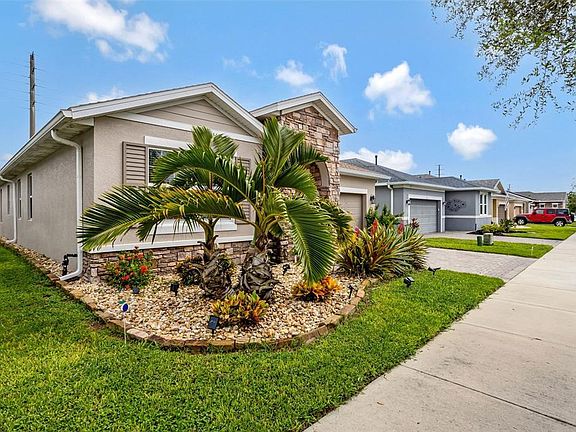 Welcome to your dream home in one of the area's most desirable 55+ guard-gated communities known as Cascades of Groveland or Trilogy! This beautifully maintained 2-bedroom, 2 and a half bathroom plus den residence is loaded with premium features and thoughtful upgrades for effortless, elegant living. Step inside to discover rich hardwood floors throughout the main living areas, an open-concept layout, and a custom-built bar area perfect for entertaining. The stylish kitchen is a chef’s delight with a gas range, ample counter space, and high-end finishes. The versatile den offers space for a home office, guest room, or creative studio. Enjoy Florida living year-round on the expansive 40x28 covered and screened lanai, complete with hurricane-grade automatic shades and ceiling fans—ideal for relaxing or entertaining in comfort and style. The home sits adjacent to the community pond which offers beautiful views and the benefit of added privacy. This energy-efficient home also features solar power, helping reduce utility costs while supporting sustainable living. Additional highlights include built-in closets, a laundry room with custom cabinetry, and custom garage storage. Located in a vibrant 55+ active lifestyle community, residents enjoy access to a clubhouse with an on-site restaurant, heated pool, gym, tennis & pickleball courts, walking trails, activity rooms, and a concert/event center that hosts year-round social events. This move-in ready home combines luxury, function, and community in one perfect package. Schedule your private showing today!