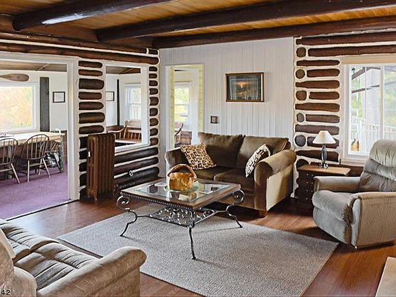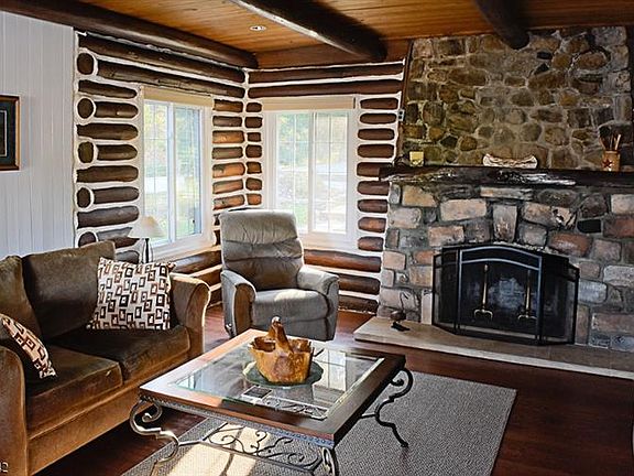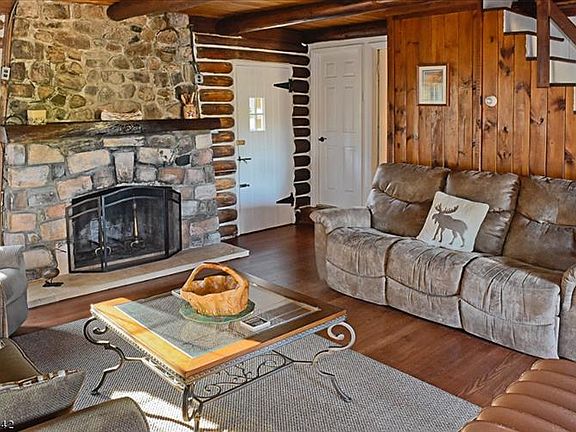 This 1927 Crane log cabin is filled with all the features one expects in these unique homes. And, this one has a beautiful view of the centerpiece of our town, Lake Mohawk. The stone fireplace, log walls, hardwood floors and beamed ceilings make the spacious living room the perfect place to gather. It flows into the dining room which has three walls of windows to enjoy four season views of the lake. There is a light, bright, updated kitchen with a vaulted ceiling and all the modern conveniences. An updated bathroom and bedroom complete the main level of the home. Upstairs is a converted attic bedroom and large closet. The walkout lower level features a spacious family room, full bath and a den that currently functions as a bedroom. There is plenty of storage in the basement and in the outdoor sheds. Situated on a triple lot, there is abundant parking and a nice yard. Your favorite outdoor space will be the large deck with an excellent view of the lake. This home is perfect as a weekend retreat or year round living.
