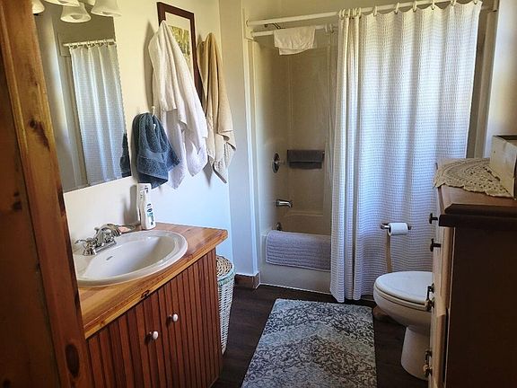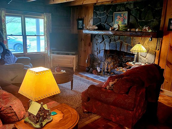 Beautiful log home located just off Mary Patton Highway. Extra clean and neat. Home features 3 bedrooms 2 and 1/2 baths. All of the rooms have floor to ceiling wood. Living room with stone fireplace and gas logs. Dining area off kitchen. Kitchen has range and refrigerator and lots of storage. Off the dining room is a large screened porch. Primary bedroom is on the main floor with bath. Laundry down stairs with 1/2 bath. Upstairs are two large bedrooms. Central heat and air. All of this sits on a large level 1.07 acre lot. It has a garden shed and a garage. Garage is now used for a workshop. Large rocking chair front porch.