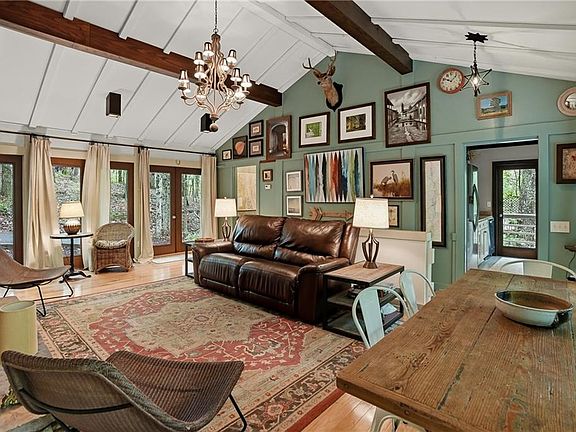 NEW ROOF Sept 2025. Being sold FULLY FURNISHED. Quiet Cul-de-sac street. Just bring your toothbrush and your hiking boots, if you like. Tucked away on a quiet street in Big Canoe, this ranch-style retreat feels like the kind of place you dream about escaping to—where mornings begin with mountain light filtering through the trees and evenings end beside a glowing fire. This home is move-in ready in every sense. Step inside and you’re immediately welcomed by a grand great room—a space defined by cathedral ceilings, exposed mountain beams, French doors, and a majestic floor-to-ceiling stone fireplace that anchors the heart of the home. The main level is perfectly designed for comfort and connection, with a primary suite and a guest bedroom with private ensuite, offering both convenience and privacy. The galley kitchen—with its granite countertops, new stainless-steel appliances, and effortless flow to the dining and living areas—feels both functional and inviting. Just beyond, an expansive deck invites you to slow down. Here, surrounded by mountain air and birdsong, you can sip morning coffee or unwind as the sun dips behind the tree line. Downstairs, the terrace level unfolds as a private retreat of its own, with two additional bedrooms and a spacious living room centered around another impressive fireplace. It’s an ideal setup for guests, family, or simply a quiet getaway corner. The property backs directly to Big Canoe green space, offering direct access to the Nature Valley Trail—so you can step right from your backyard into miles of natural beauty. Every detail of this home reflects warmth, craftsmanship, and care. Turn the key, settle in, and start living the mountain life you’ve always imagined. Big Canoe spans 8,000 acres, with over one-third preserved as parks and green space, and is certified as a Nature Preserve by Georgia Audubon. Residents enjoy access to golf, tennis, pickleball, bocce, a 13,000-square-foot Wellness Center, dog parks, playgrounds, lakes, and 25 miles of scenic hiking trails, with flexible membership options or pay-as-you-go access. Buyer to verify all information and dimensions deemed important.