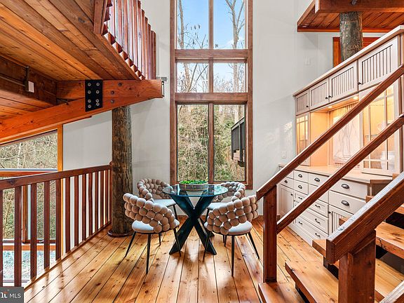 Epic Home just listed in Waterfront Epping Forest Community! Post and Beam Tree House with 6 Levels of Living Space + an additional lower level with utility room and storage in basement. The perfect location in one of Annapolis's prime waterfront communities! Contemporary log home design with custom built ins and windows everywhere bringing the surrounding peace of nature inside. Intimate spaces uniquely designed within an open floorplan. Custom cabinetry, soaring pine plank ceilings, walls of Anderson windows, Pine wide plank flooring and over 1,000 square feet of outside deck space. Imagine spending a quiet snowy Saturday in this glorious property curled up with a book in the library loft surrounded by woods and nature. Some Brand New Anderson Windows, 15K Panoramic Forever Sliding Doors to access deck in loft and new roof. Epping Forest is a Gated Waterfront Community on the Severn River with a communal beach, waterfront Clubhouse with restaurant and bar, tennis/pickleball and Marina. Your neighbors will become your best friends and better than family. The very best you can find in Annapolis! Year around activities include 4th of July Fireworks, Oyster & Bull Roast, Boat Club, Summer Volleyball League, Kayaks & summer camps. Come experience the best Chesapeake Bay Maritime Annapolitan Lifestyle around!