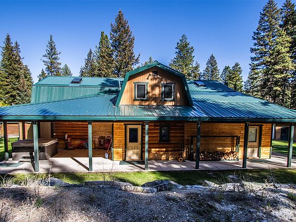 This rustic Montana property is perfect for the avid outdoorsman that dreams of having all the recreational opportunities just outside their front door. Secluded, yet off scenic Hwy 2 west of Kalispell, this 31-acre rustic log home is private, secluded, and comfortable. The open floor plan seamlessly connects the expansive main level kitchen, dining room, and vaulted living room, making it perfect for family entertaining. The kitchen is a chef's delight, featuring stainless steel appliances with an expansive island and direct access to the large outdoor deck. The great room offers a convenient wet bar, and a rustic brick fireplace amongst floor to ceiling windows that provide ample light throughout the space. Also on the main level is a large master bedroom en suite, and a substantial utility and laundry room. Upstairs above the log living area, are three rustic bedrooms with a separate full bath, a storage room, and an open loft bonus room. Additional property features include a spacious covered patio and wrap around deck, a detached two-car garage, a large shop perfect for hobbies and storage, a backup generator system, several storage sheds, and meticulously landscaped grounds. This property is not just a home; it's a lifestyle. Located 25 minutes from Kalispell, 35 minutes to Glacier International Airport, and borders state land and near 6000 acres of Forest Service, this Montana home offers complete seclusion to the active outdoorsman.