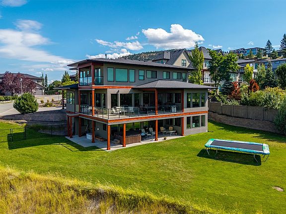 Welcome to The Benchlands at Juniper Ridge—where executive living meets thoughtful design and breathtaking views. Perched at the end of a quiet cul-de-sac, this custom home by award-winning A&T Developments offers panoramic views from every level—stretching across the valley to Kamloops Lake. Built in 2011, ideal for growing families or multi-generational living, offering space, privacy, and refined finishes throughout. The walk-in main level features an open-concept layout with rich wood tones, expansive windows, and seamless indoor-outdoor flow. The chef’s kitchen includes granite counters, gas cooktop, pot filler, wall ovens, walk-in pantry, and a large island with seating—perfect for entertaining or family gatherings. Upstairs, three spacious bedrooms each have an ensuite, while the peaceful primary suite boasts a walk in shower, separate bathtub, corner windows, a walk-in closet, and private deck to fully enjoy the views. Downstairs offers a bright rec room with in-floor heating, flex space, and two oversized storage/utility rooms. It's pre-plumbed for a bar, sauna, and future pool or media lounge. The heated 4-car garage features in-floor radiant heat and an extra bay for a workshop, toy storage, or additional vehicle space. Located in the desirable Juniper Ridge Elementary catchment and steps from parks and trails, this home blends luxury, function, and nature—showcasing Kamloops living at its best. Seller has just refinished wood trim (not reflected in every photo).
