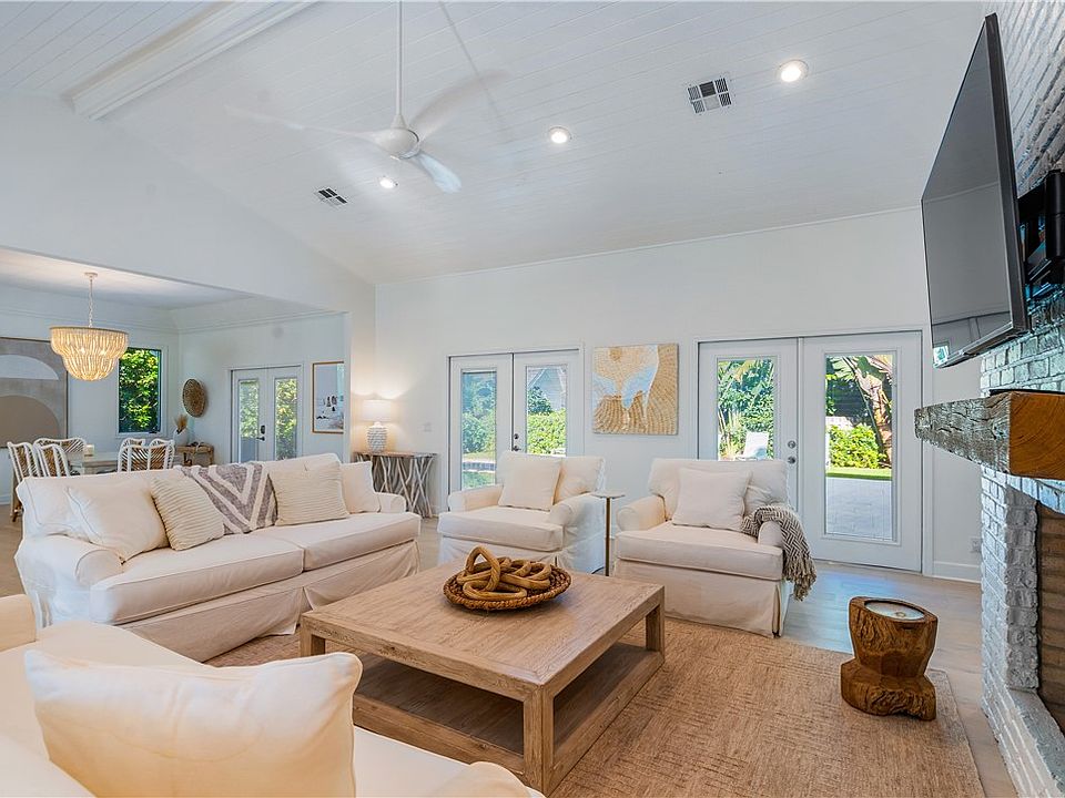 Soaring white vaulted ceilingsOpen-concept living spacePrivate tropical paradiseLight oak wood floorsLush mature landscapingLarge sparkling pool