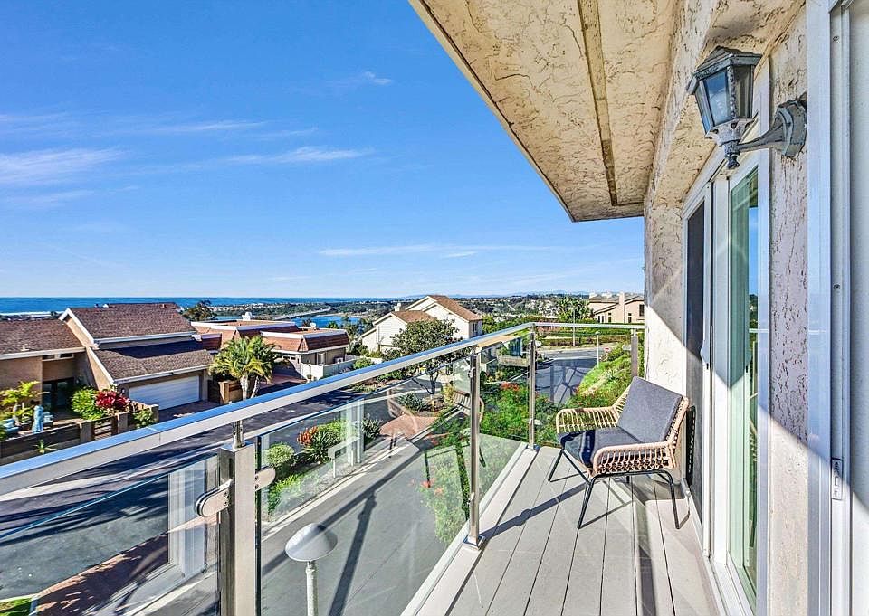 Perched in the coveted Skyloft community, this beautifully updated coastal residence offers panoramic white water ocean and lagoon views that define Southern California coastal living from the moment you arrive. Step inside this thoughtfully remodeled home where modern comfort meets timeless style. The generous 3-bedroom, 3-bath layout spans over 2,200 square feet of living space, designed to maximize the views and natural light throughout. The heart of the home features an updated kitchen with slab marble counters, stainless-steel appliances, and ample storage — perfect for both everyday living and entertaining against the backdrop of endless blue. The primary suite is a true retreat with a fully renovated spa-like bath and custom walk-in closet space, while the upstairs den with built-in shelving and Murphy bed offers flexible living for guests, a home office, or a quiet reading nook. Outside, savor cool ocean breezes and stunning vistas from multiple vantage points, including elevated outdoor spaces that feel worlds away yet are minutes from the best of Encinitas. The property enjoys a two-car garage, easy access to I-5, and proximity to renowned beaches, top dining, and vibrant community amenities. As part of the Skyloft community, homeowners benefit from resort-style features including a clubhouse, pool, spa, and tennis/pickleball courts, making this an ideal retreat for active coastal living. Live the California coastal dream, where every sunset paints the sky and every day feels like a vacation.