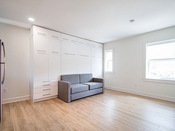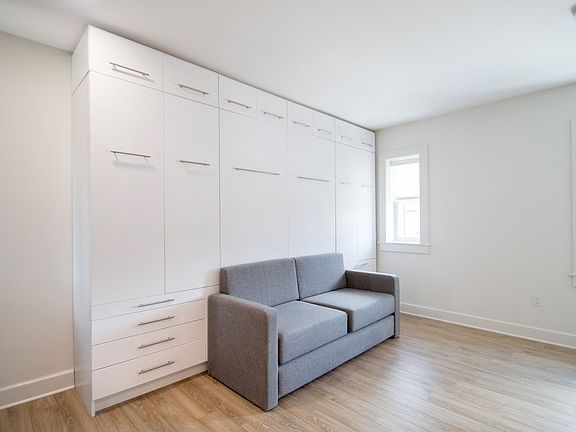Enjoy a bright open living space with warm finishes, a functional kitchen, and ample storage- including a built-in Murphy bed that maximizes space and versatility. This building also features secured entry!