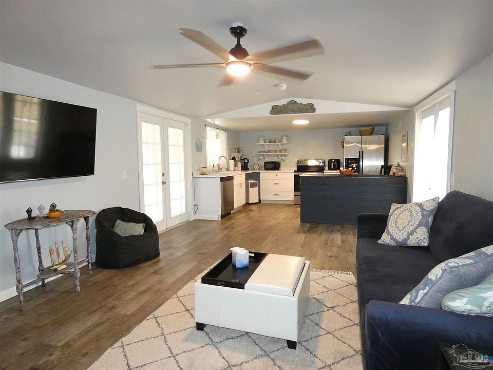 Open House Sat 2-4. WOW!! Affordable and beautiful with deeded bay access! This 1 bedroom, 1 bathroom, completely updated mobile home is a must see. All luxury vinyl plank flooring throughout with new kitchen cabinets and counter tops. Pull up a stool and enjoy the breakfast bar and tastefully updated kitchen. The living room is spacious and inviting. The bathroom has a NEW walk in shower, New double vanity sink, and New toilet. The bathroom also houses the stacking washer and dryer and is enclosed by a gorgeous sliding barn door. Enjoy the tranquil bedroom with new ceiling fans in the bedroom and living rooms. Outside the yard has plenty of space and surrounded by a privacy fence. Enjoy your large deck, just in time for perfect Fall temperatures or the screened patio that's nice and shaded for those warm summer months. 2020 privacy fence, 2020 roof. This property has deeded East Bay access at the end of the street for you to launch your kayak or paddle boat, fish or cool off. Make your appointment to see this little beauty today for your next little vacation home by the Bay! See the you tube video walk through linked to the listing: https://youtu.be/bPr7u_UKLR0?si=vdpP9qi6lJK0V1zk